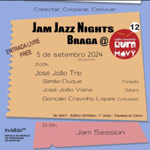 JamJazzMinho is a non-profit association founded in August 2022 in the vibrant city of Braga, driven by a passion for promoting Jazz music. They are eager to connect musicians, audiences, and beyond. JamJazzMinho regularly organizes various activities across several cities in the Minho region and its surroundings. And there’s much more to come!